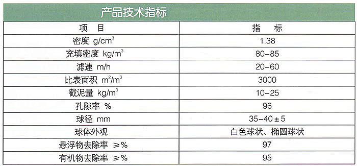 纤维球滤料主要技术指标