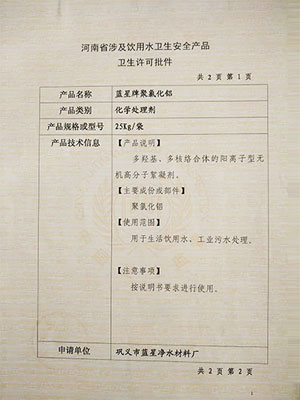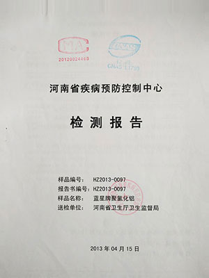 聚合氯化铝,俗称净水剂,又名聚氯化铝,简称聚铝,英文名字PAC。和碱式氯化铝,喷雾干燥聚合氯化铝同属于相关类净水药剂。产品经河南省卫生厅检验,完全符合《生活饮用水卫生监督管理办法》的规定,并颁发有《河南省国产涉及饮用水卫生安全产品卫生许可批件》。