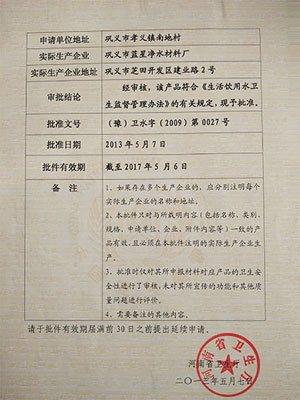 3、聚氯化铝使用方法:将产品(固体)与常温水按1:2-2:5(重量比)混和搅拌,等药品完全溶解后,加水稀释至所需浓度。原水浊度在100-500时,每千吨水投加量为4-8KG.用前最好根据水质特性进行小试,选出最佳值,然后投用。
